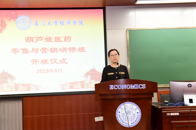 8月31日,百亿医药零售与营销研修班开班仪式在厦门大学经济学院举行,为期8天的“厦大百亿班”正式拉开帷幕。厦门大学经济学院继续教育中心主任廖景峰先生与百亿药业集团董事长刘景萍女士分别在开班仪式上致辞,中国医药物资协会研究院执行院长代航先生担任本次研修班班主任并主持开班仪式。